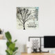 Poster de árvore cristã com escritura do Salmo 1:1-3.ele é como uma árvore plantada por riachos d'água.' Verso inspirador sobre a prosperidade de um homem de crença. Estilo de inclinação, ramificações de árvore preta sobre um fundo gráfico com texto preto impresso em um poster quadrado.