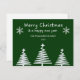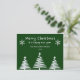 Simples Arte De Árvore De Natal Merry Cartão De Natal, Cartão De Férias. Este desenho da árvore de Natal na moda tem linhas brancas simples formando a forma de três árvores de Natal em um fundo verde. Um roteiro elegante de caligrafia em branco diz "MERRY CHRISTMAS AND FELIZ ANO NOVO". O nome, o ano e a mensagem de dentro podem ser personalizados ou simplesmente excluir o texto para mantê-lo vazio para sua própria nota manuscrita.