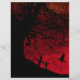 Um design gótico assustador de uma silhueta de árvore com solteiro voando em direção ao cemitério. O fundo é um céu vermelho atmosférico escuro. Este é um trabalho perfeito para a arte de Halloween e projetos de revistas e rascunhos góticos. A parte de trás do papel é vermelho escuro, mas você pode mudar essa cor indo para 'Editar design' e selecionando a camada 'Voltar: imagens e texto'. Designs compatíveis e complementares podem ser encontrados em nossa loja Zazzle.