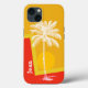 capas de iphone de na moda, com gráficos de uma palmeira sobre um fundo solar de abstrato laranja e amarelo. Personalize o texto personalizado para você mesmo ou como uma ideia de presente de excelente.