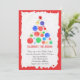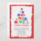 Um convite divertido do Feriado retratando uma Árvore de Natal feita de bolhas coloridas de aquarela com um quadro vermelho.