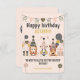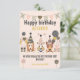 A ilustração de três cachorros bonitos com balões de Aniversário Tenha um feliz aniversário com este cartão. Estes três filhotes bonitos estão cercados por belos balões e presentes em preto pastel, ouro, cor rosa macia. Personalize com nome e obrigado o seu texto! Visite nossa coleção para combinar decoração de convites de aniversário de animais de estimação e presentes. Esta coleção será favorita entre amantes de cães e mães de cães!