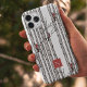 Esta moderna capa de telefone de inverno e época de férias monogramas apresenta pássaros desenhados à mão com pássaros cardinais vermelhos tocados em galhos a tinta preta, contra um fundo branco elegante. Personalize com seu monograma.