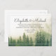 Os pinheiros da floresta aparecem neste elegante convite de casamento.