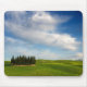 Mousepad com um grupo de árvores de cipreste em uma paisagem com colinas verdes e em flores amarelas sob o branco bonito nubla-se perto de Torrenieri no d'Orcia de Val (vale de Orcia) em Toscânia, Italia.