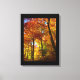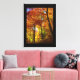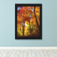 Arte canvas mostrada com uma impressão fotográfica de lindas árvores de outono. A canvas tem uma borda preta.