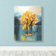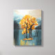 Árvores de outono vibrantes com folhas de ouro refletidas num lago azul-sereno. Uma arte moderna e calorosa de canvas que traz calor e elegância a qualquer decoração de casa ou escritório.