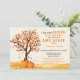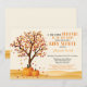 Cartão de Convite para Chá de fraldas de Queda com árvores em queda e folhas de fundo. Para mais personalização, clique no botão "Personalizar" e use nossa ferramenta de design para modificar este modelo.