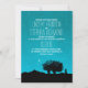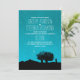 Convite romântico para casamento rústico com noite azul estrelada, lua, duas árvores crescendo juntas e casal silhueta.
