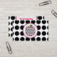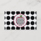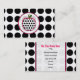 Um cartão de visita que caracteriza um fundo preto das bolinhas sobre o branco com guarnição cor-de-rosa. Texto cor-de-rosa e preto sobre o branco completo. Personalize com sua informação. Características do lado oposto que combinam o fundo das bolinhas. A maçã de harmonização das bolinhas dentro do círculo deu forma ao quadro cor-de-rosa.