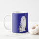 Um cão peludo grande em canecas de vários fundos da cor e igualmente em uma escala de produtos customizáveis. Adicione o texto, escolha a cor do fundo. Inclui capas de iphone, papel de carta e cartões, camisas de t, mercadorias da mesa, produtos da cozinha, bolsas, dog tags e mais.