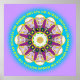Mandala digital com imagens de Babaji, lótus, símbolos religiosos, e o mantra Om Namah Shivaya com sólida formação de lavanda.