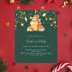 Um convite para uma festa de Natal. Um fundo verde. Decorado com estrelas ouros e uma pilha de presentes. Personalize e adicione os detalhes. Texto branco. 1 folha = 1 convite impresso de borda a borda.