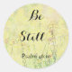 A minha trabalho de arte digital original está representada neste adesivo de fé, que consiste em flores silvestres amarelas com as palavras "Be still..." e a referência da Escritura bíblia das palavras encontradas no Salm 46:10. A inscrição está em um tipo de fonte caligráfica bonito. Estes adesivos são um design de arte contemporânea. Podem ser utilizados em muitas ocasiões; para selar os envelopes ou as bolsas de sanduíche ou mesmo em livros de sucata!
