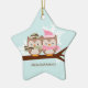 O casal adorável das corujas empoleirou-se em um ramo.