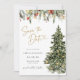 Boho Rustic Christmas Tree Twinkle Lights Feriado De Inverno Salve O Convite De Data. Bohemian Style Drop Botanicals Invitation with Elegant and Simple boho Rustic Tree and Pine Botanicals in Hand-print Watercolor. O fundo verde é lindo para casamentos de vassoura e casamentos de Natal. Convite simples e imprimível para feriados e casamentos no inverno.