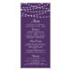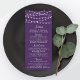 Simples mas elegante, as luzes de cordas na coleção de casamentos roxos é um design espetacular com luzes de cordas brancas adoráveis em um fundo roxo, o que é perfeito para qualquer celebração de casamento moderna. Estes cartões de menu podem ser personalizados para a sua ocasião especial e fariam o menu perfeito para o seu casamento, chá de panela, festa de noivado, festa de aniversário e muitas outras ocasiões especiais. Adicione seu texto personalizado a este design usando as caixas "Editar este modelo design" no lado direito do item, ou clique no botão azul "Personalizar" para organizar o texto, alterar as fontes e cores e também adicionar informações ou imagens adicionais a este design.