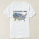 Este t-shirt caracteriza um mapa dos Estados Unidos que consiste nos estados feitos por suas matrículas respectivas.
