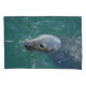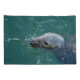 Uma cinza de foca natação graciosamente através da água calma do mar, sua cabeça quebrando claramente a superfície. As ondulações se espalharam para fora, criando padrões gentis ao seu redor. Perto de fotos tiradas no Mercado de Peixes de Chatham, famoso por frutos do mar frescos e fotos de focas nas docas. Chatham, MÃES