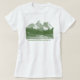 Silhuetas de montanha em tons de verde com texto personalizável. O texto de amostra baseia-se numa citação do naturalista John Muir e pode ser alterado ou suprimido.