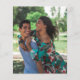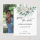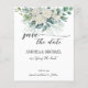 Casamento de rosas brancas de eucalipto verde de orçamento salve o modelo de convite de data com fotos de casais no verso.