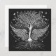 Asas, árvore e raízes em prata metálica simbolizando asas para voar com detalhes de aves, corações e flores sobre fundo preto. Trabalho de arte apresenta texto, "Dê asas para voar, raízes para voltar e razões para ficar. Ela voa nas suas próprias asas. Enraizada no amor, ela floresce."