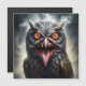Foto de uma coruja vampira assustadora cercada de fumaça
