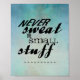 citando poster nunca suar o texto de coisas pequenas no estilo vintage, azul verde, em relevo, em decor de arte para casa ou escritório.