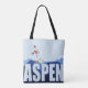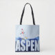 Divertido Aspen Colorado, o tema era todo sobre um saco de totas de impressão, feito em azul com gráficos de montanhas cobertas de neve, um esqui de boneco de neve e texto gráfico lendo ASPEN. Personalize para adicionar mais texto a este viagem de excelente ou a este saco de ferramentas para todos os fins.