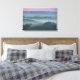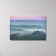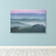 impressão de paisagem canvas de um nascer do sol nebuloso com céu e neblina cor-de-rosa entre as colinas da Toscana sobre o agriturismo podere il Belvedere, na fazenda de Valdorcia (Vale de Orcia), entre Pienza e San Quirico, na Toscana, Itália.