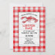 Convide seus assares de lagosta em estilo com nosso cartão de convite rústico personalizado. Este design modelo apresenta um fundo de xadrez de búfalo vermelho e branco com textura de madeira falsa. E a lagosta desenhada artificialmente é o foco principal. Acima diz: "Você é convidado para nossa" e abaixo "Assar de lagosta" com seus detalhes abaixo para personalizar. Projetado pelo artista mundialmente famoso ©Tim Coffey.