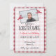 Este assar de lagosta ou convite de aniversário de fermento apresenta um fundo de xadrez de picnic vermelho e branco vintage e ilustração de lagosta gráfica vermelha. É simples personalizar com seus detalhes de celebração de banquetes de lagosta para que você possa seguir com a diversão. Excelente para qualquer festa de aniversário etária ou outra celebração festiva reunir amigos. Festa de janto costeiro. Celebração à beira-mar.