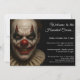 Suba... se se atreve! Este terrível convite do Dia das Bruxas apresenta um design de palhaço assustador, perfeito para uma festa de fantasia adulta. Personalize com seus detalhes de eventos e prepare-se para uma noite de gritares, medo e diversão perversa.