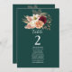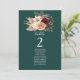 Guie seus convidados com elegância usando este gráfico verde esmeraldo de assentos de casamento com burgundy, blush e peach florals. Um design romântico com detalhes botânicos de aquarela, perfeito para casamentos outono e esquemas de cor de joias. Personalize o número da tabela e os nomes de convidados para uma aparência de recepção perfeitamente coordenada. Combina perfeitamente com a suíte Floral Rustic Emerald & Burgundy de cheio.