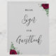 Por favor, assine nosso sinal de casamento de rosa vermelha de guestbook de Designs Twin Spirit. Esta design apresenta um pano de fundo de uma cinza, folhagem verde e flores vermelhas, fazer-a como uma adição ideal a qualquer cerimônia de casamento.