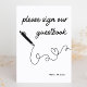 Adicione um toque de elegância ao seu dia especial com este moderno minimalista sinal "Por favor assine nosso guia". Apresentando um elegante design preto-e-branco com uma caneta desenhada à mão e um motivo cardíaco, este sinal orienta os convidados com estilo. Ideal para casamentos, festas de noivado, ou qualquer celebração, é a maneira perfeita de garantir que suas memórias sejam capturadas. Personalize-o com nomes e datas para um toque personalizado que reflita a sua única história de amor. Quer seu tema seja clássico, contemporâneo ou industrial, este símbolo chic complementa tudo.