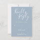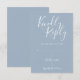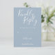 Este cartão RSVP elegante em azul empoeirado e branco pode ser personalizado com letras elegantes em branco. Você pode adicionar informações adicionais, como a escolha do menu no verso. Perfeito para casamentos, chá de noiva, chá de bebê, batizados, festas de noivado, celebrações de aniversário, formaturas, aniversários e outros eventos especiais ao longo do ano! Concebido por Thisisnotme