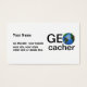Este design de cartão geocaching diz GEOcacher. O O é uma imagem de uma terra com as bandeiras nele, como as bandeiras onde você encontrou esconderijos.