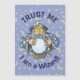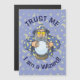 Um velho feiticeiro com capa azul olhando para a bola mágica de cristal.