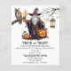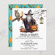 Truque ou convite para tratar a família inteira com um assistente e uma ilustração da coruja da tutela. Você pode personalizar este Convite com seus detalhes.
