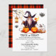 Truque ou convite para tratar a família inteira com um feiticeiro, alguns morcegos e ilustração de fantasmas fofos. Você pode personalizar este Convite com seus detalhes.