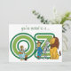 Fácil de personalizar o convite de festas do chá de fraldas. Basta adicionar suas informações! Pode também mudar facilmente a redação e a utilização para a festa de aniversário de uma criança! Se quiser alterar a cor do plano de fundo ou o estilo da fonte, basta clicar no botão "personalizar" para acessar todas as ferramentas de design. Imagem de contos de fadas clássicos da Vintage feita por William Wallace Denslow, do livro de histórias da Era Vitoriana O Maravilhoso Mago de Oz de L. Frank Baum. Grandes letras que soletram a palavra "OZ" cercada por personagens do Feiticeiro de Oz, a jovem Dorothy, seu cão de estimação Toto, o Leão Cowardly, o Tin Woodsman e o Escarneiro.
