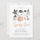 Assustador Um! Um convite de 1º aniversário assustador, fofo e doce, apresentando fantasmas em aquarela e elementos de Halloween.