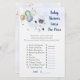 Estes adoráveis "Guess The Price Game Cards" são uma forma excelente de se divertir com o seu Chá de fraldas e é garantido ser um grande sucesso! Simplesmente passe-os durante o Chá de fraldas onde os convidados se divertirão adivinhando quanto cada item de bebê custa. A pessoa com o total mais próximo ganha! A futura mãe pode levar para casa os itens do bebê no final do chá. Você pode até personalizar os itens da lista! A design apresenta um astronauta com planetas coloridos com estrelas de folha de ouro falsa.