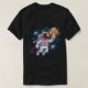Design de camiseta imaginativa de um astronauta flutuando com balões, mesclando exploração espacial com imaginação lúdica.