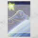 Ilustração vindima de planetas futuristas de ficção científica na imagem do espaço sideral. Um design de quadrinhos clássico que apresenta um astronauta retrô de ficção científica em uma espaçonave e flutuando no espaço sideral com uma lua brilhante ou sol atrás dele no céu noturno com estrelas.