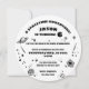 Astronauta espacial espacial espacial espacial exclusiva, divertida, moderna e ousada aventura única e personalizada design de convite de aniversário fotográfico. Uma ilustração ousada de um capacete astronauta é deslocada na frente do convite espacial redondo. Criamos este único de um tipo personalizado de capacete espacial astronauta no qual você coloca sua foto de aniversário para criar a aparência de que eles estão vestindo o capacete espacial de um astronauta! A paleta de cores preta e branca é usada para criar um tema simples, porém ousado e atraente, de design de celebração de espaços de aniversário. A cor preta dominante é utilizada para representar o espaço exterior profundo. Desenhos divertidos de ilustração cartoonômica com foguete Espacial, estrelas espaciais, meteoros, estrelas fotografadas, astronauta e planetas espaciais são incorporados a esta divertida ousadia neste design de aniversário da aventura espacial mundial.