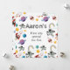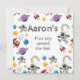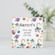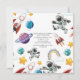 Primeiro convites de festas de aniversários do espaço externo apresentando um fundo de céu estrelado, planetas do sistema solar espalhados ao redor da borda, um foguete, astronauta, e um modelo moderno de celebração de primeiros aniversarios que é fácil de personalizar.