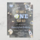 Convite Espacial para Primeiro Aniversário do vosso filho com planetas, estrelas e astronauta.