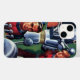 Ilustração vintage futurista de Ficção Científica de alienígenas e robôs apresentando um homem trabalhando em seu robô de metal. Um astronauta é um piloto que comanda os controles de seu foguete. Clássico design retro de ficção científica dos anos 50 em estilo de história em quadrinhos.